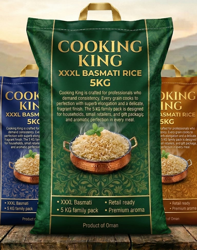 Sadiqeenoman offers a curated portfolio of branded rice products, from our flagship SADIQEEN 1121 XXXL to the trusted SAAD, COOKING KING, and SHABAB lines.