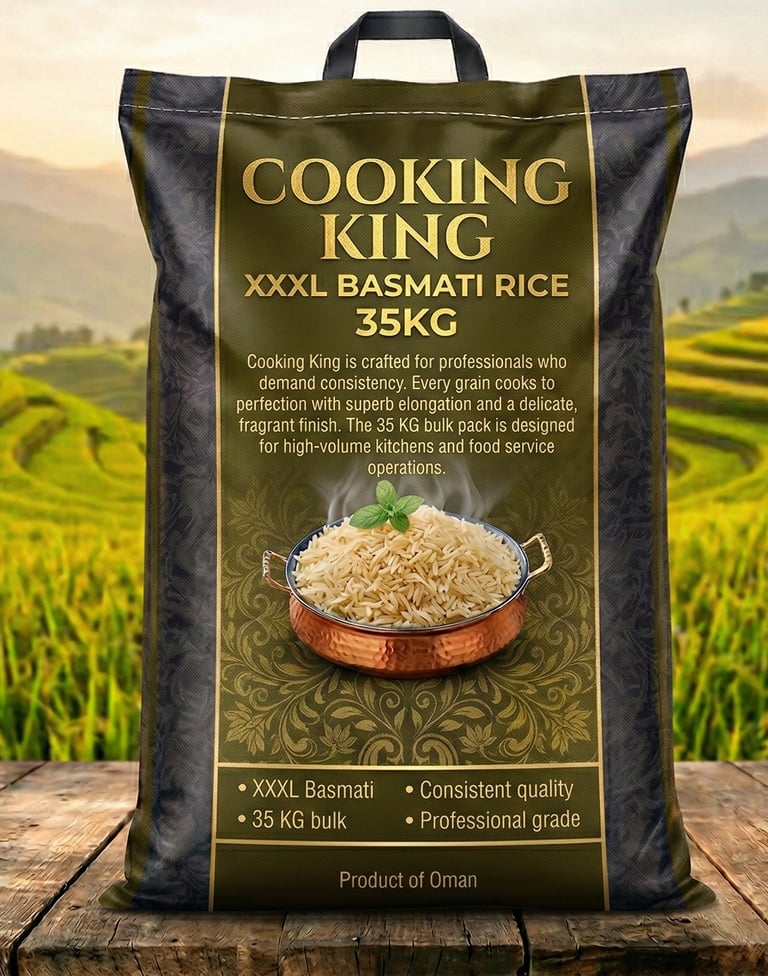 Cooking King is crafted for professionals who demand consistency. Every grain cooks to perfection with superb elongation and a delicate, fragrant finish. The 35 KG bulk pack is designed for high-volume kitchens and food service operations.